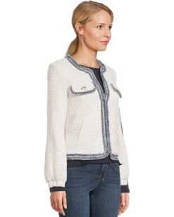 Liverpool Los Angeles Collarless Jacket with Frayed Edges Textured Chevron Chenille | Sweaters