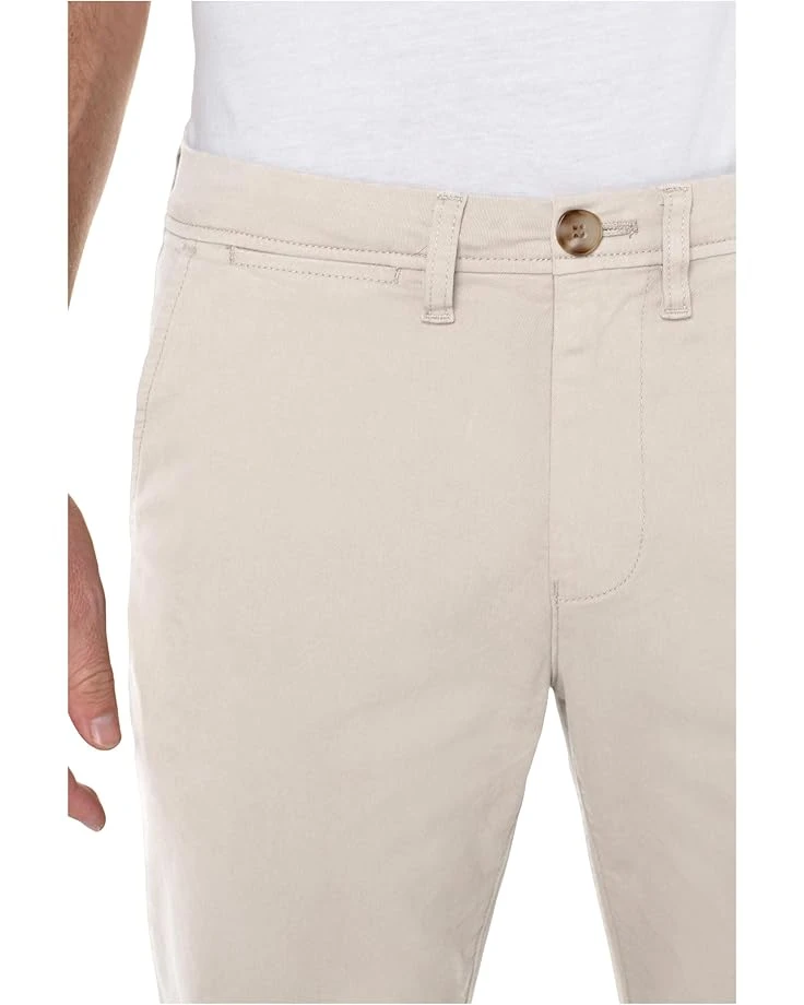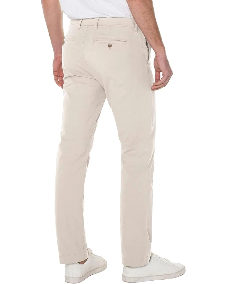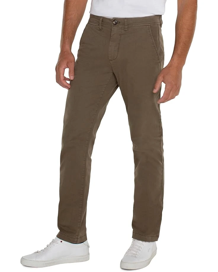 - Stay comfortable and in style wearing the Liverpoolâ„¢ Los Angeles Chino Pants. The premium garment-dyed chino twill fabric of these pants offers all-day comfort and breathability. These trousers are finished with a zip-fly, buttoned closure, and belt loops. The flat front style and straight leg silhouette of these pants offer style. These mid-rise pants will become your all-season favorite.