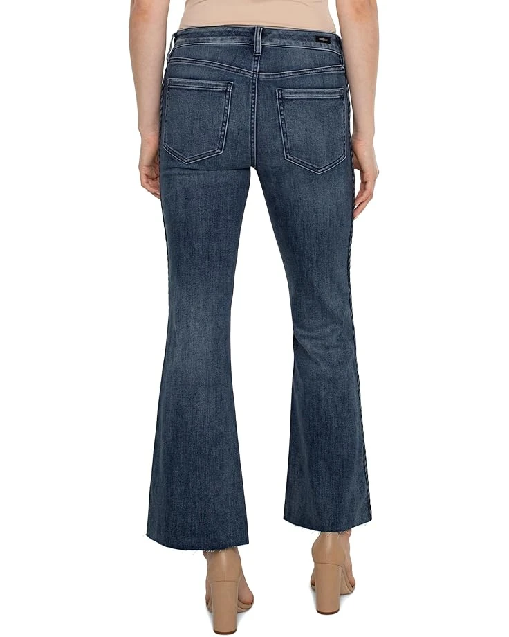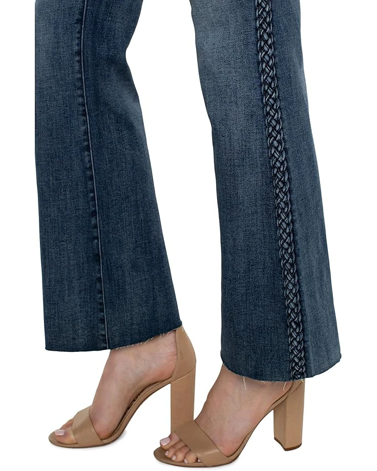 - Designed in premium crosshatch denim, these Liverpoolâ„¢ Los Angeles Hannah Flare Jeans 32″ are the perfect addition to your wardrobe. With a flattering mid-rise waist and a set-in waistband with belt loops, they offer both style and comfort. The braided trim adds a touch of uniqueness, while the flared hem completes the trendy look.