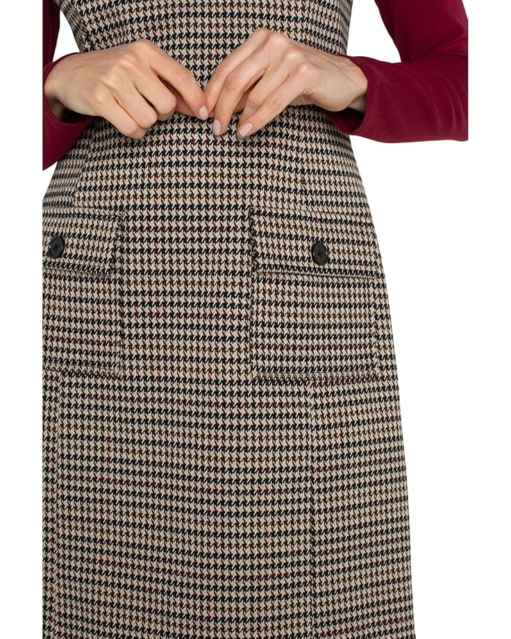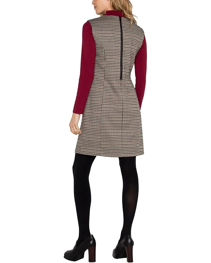 - Crafted with care and attention to detail and made in a beautiful black tan houndstooth fabric, the Liverpool™ Los Angeles Sleeveless Shift Dress exudes timeless elegance with a modern flair. Its two front pockets add a touch of practicality without compromising style while the zippered back closure ensures a seamless fit, allowing you to slip into this dress with ease. This patterned dress comes with a sleeveless style, crew neckline, and straight hem. Elevate your outfit with classic black heels or opt for a more casual vibe with your favorite pair of loafers.