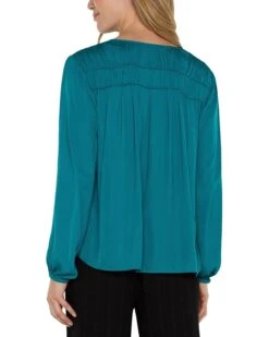 Liverpool Los Angeles Long Sleeve V Neck Woven Blouse with Shirring Light Weight Textured Sateen | Shirts & Tops